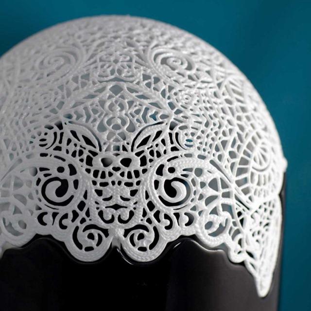 有了3D打印技術(shù),原本需要耗時(shí)耗財(cái)耗力的事情都變得相對(duì)容易。法國(guó)設(shè)計(jì)師Linlin 和Pierre-Yves Jacques為蕾絲控們專門打造了一款燈。用3D打印出的蕾絲燈罩就像一塊兒真的蕾絲布蓋在燈體般,當(dāng)你將燈點(diǎn)亮,整個(gè)墻壁也用蕾絲裝扮一番。
